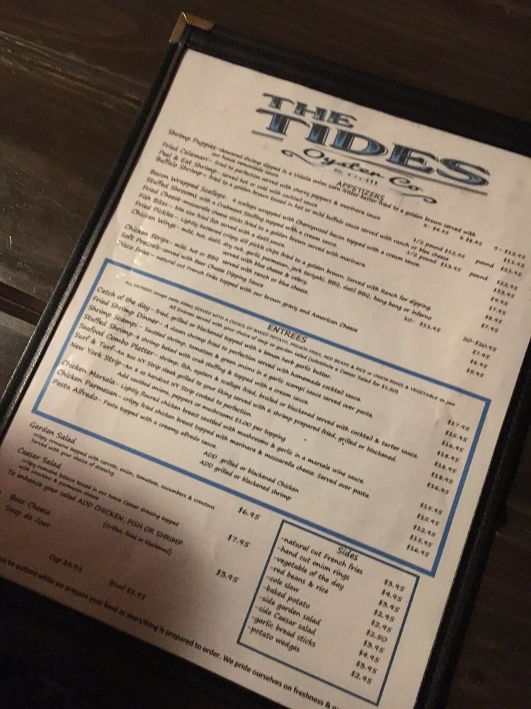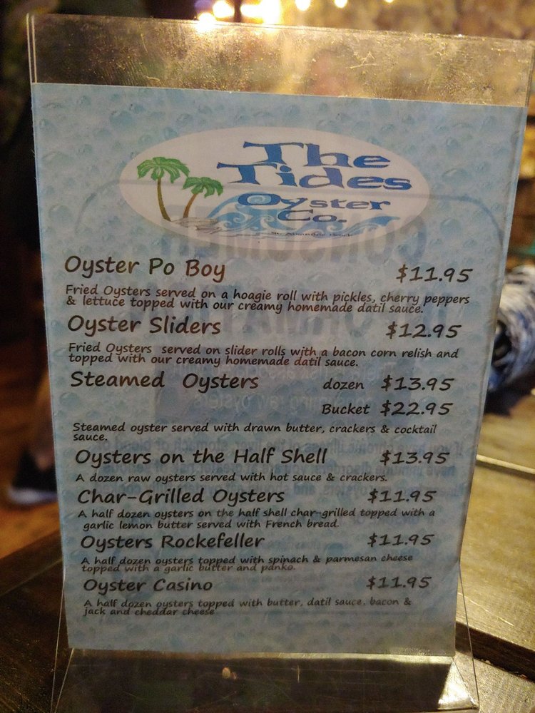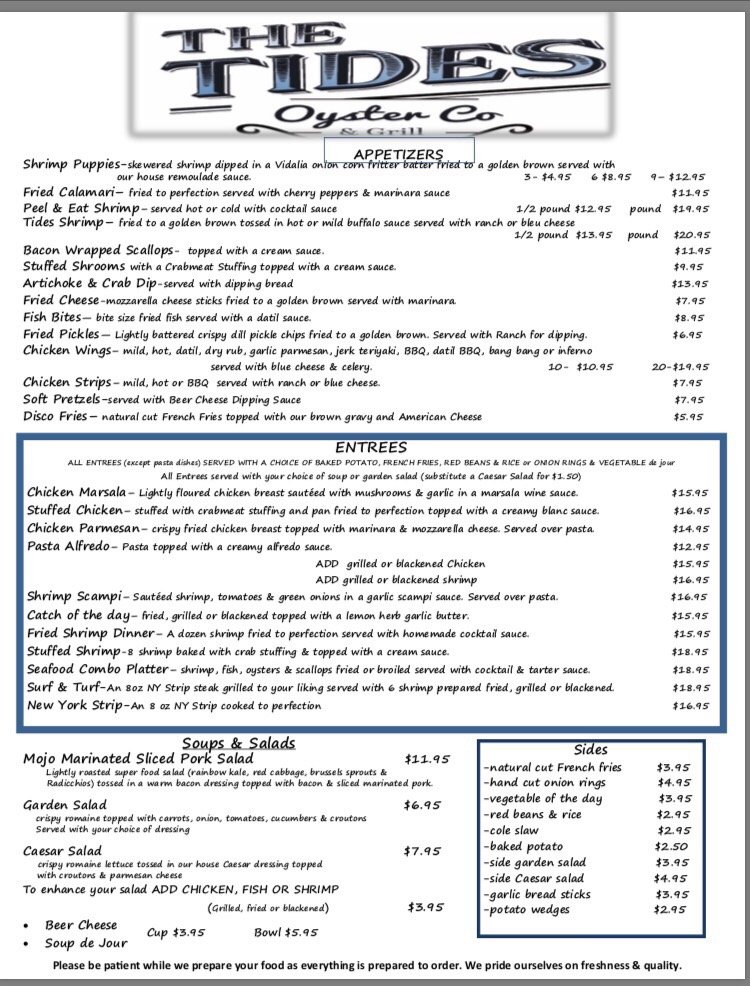 The Tides Oyster Co. & Grill Menu (2025 Update)